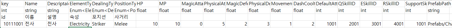 엑셀로 캐릭터 및 스킬 테이블을 관리, 튜터님의 ExceltoJsonWizard를 사용해서 json으로 변환해서 사용.