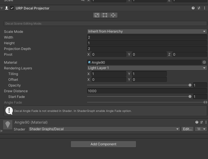 90도 부채꼴, 180도, 원형 세종류의 데칼을 준비하고, 이 데칼이 바닥에만 표시될 수 있도록 Rendering Layers를 LightLayer1을 지정해주고, 바닥도 LightLayer1을 지정해주었다.