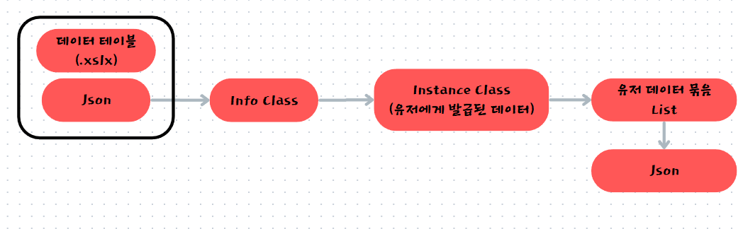 Json으로 기본 데이터 테이블을 구성하고, 이를 Info클래스로 받아서 사용한다.