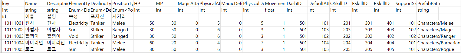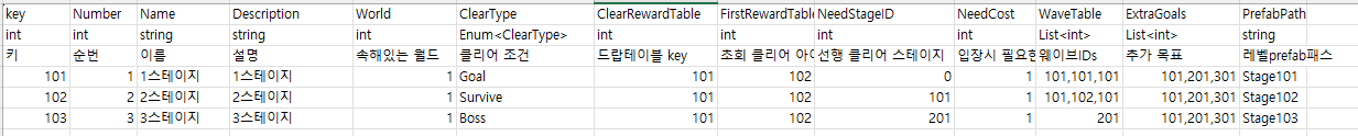 위는 캐릭터 테이블이고, 아래는 스테이지 테이블이다.