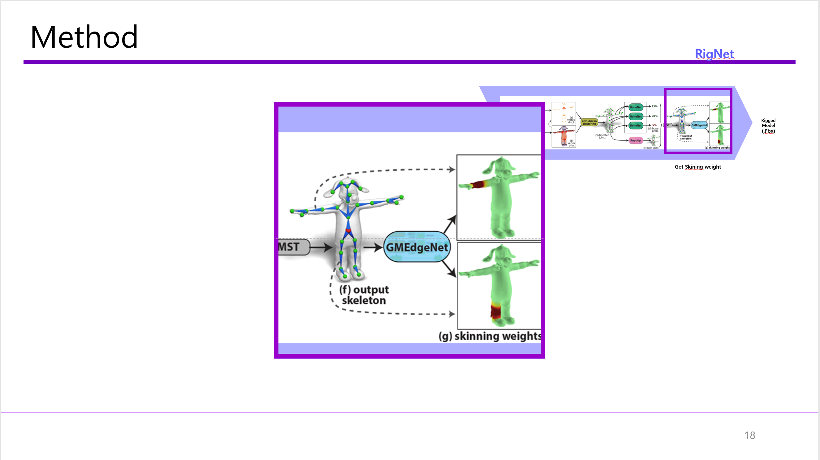 - GMEdgeNet을 이용해 각 본들의 위치에 따른 Mesh의 Skining weights을 찾음