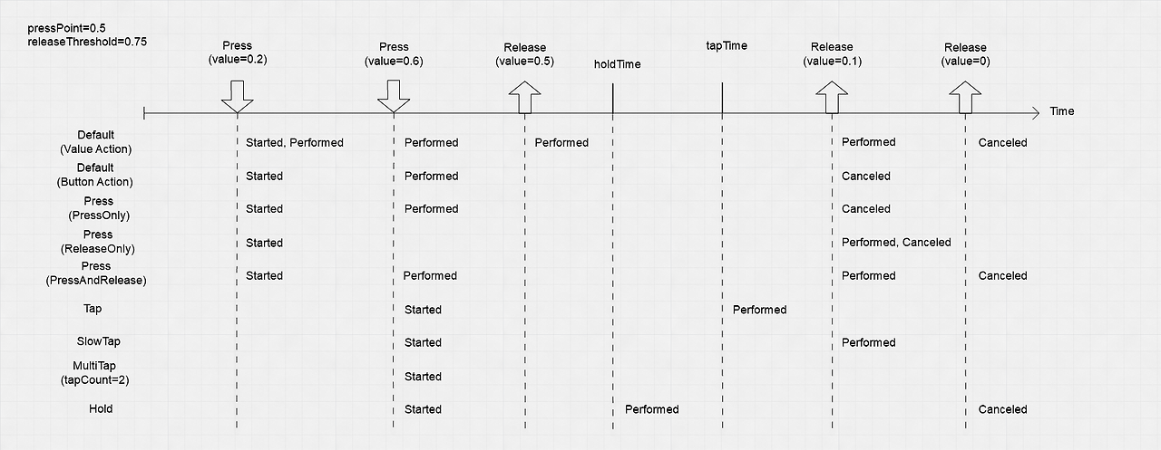(https://docs.unity3d.com/Packages/com.unity.inputsystem@1.11/manual/Interactions.html)